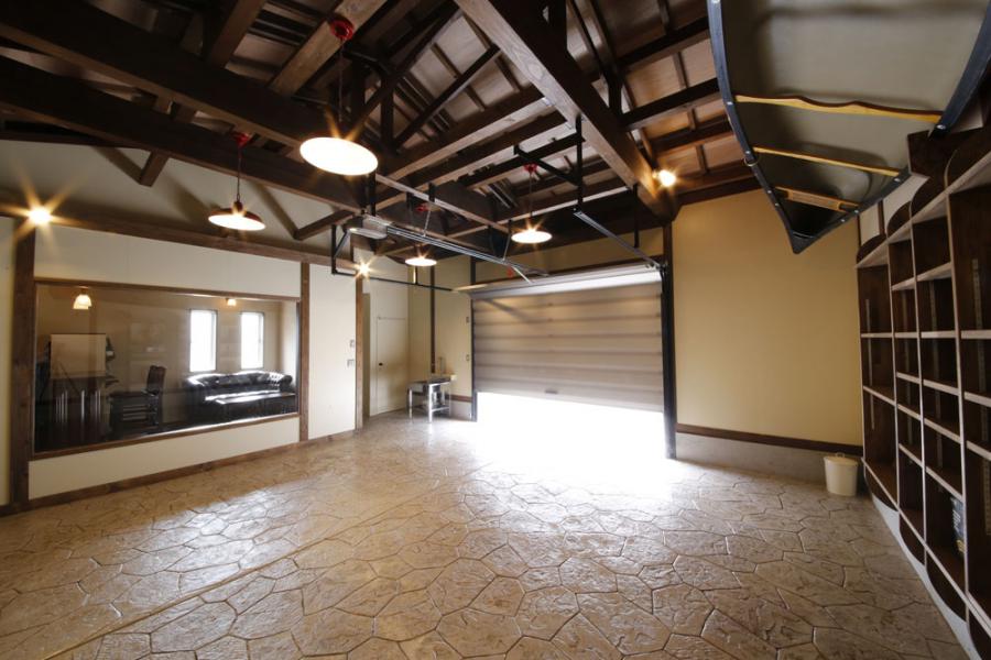・お客様が集めたアンティーク家具の雰囲気に合わせて、ラウンジ内部は色、材木の樹種、カットの仕方等を吟味。 ・ライティング計画にも数度の打合せを重ね、影の部分をどう作るかがポイントでした。 ・ガレージ部分には趣味が多彩なお客様の「ギア(gear)」を視覚的に楽しめる収納方法をお客様と造り上げました。 ・万が一の災害にも耐えれるよう、今までの倉庫より一段と強度も高めました。